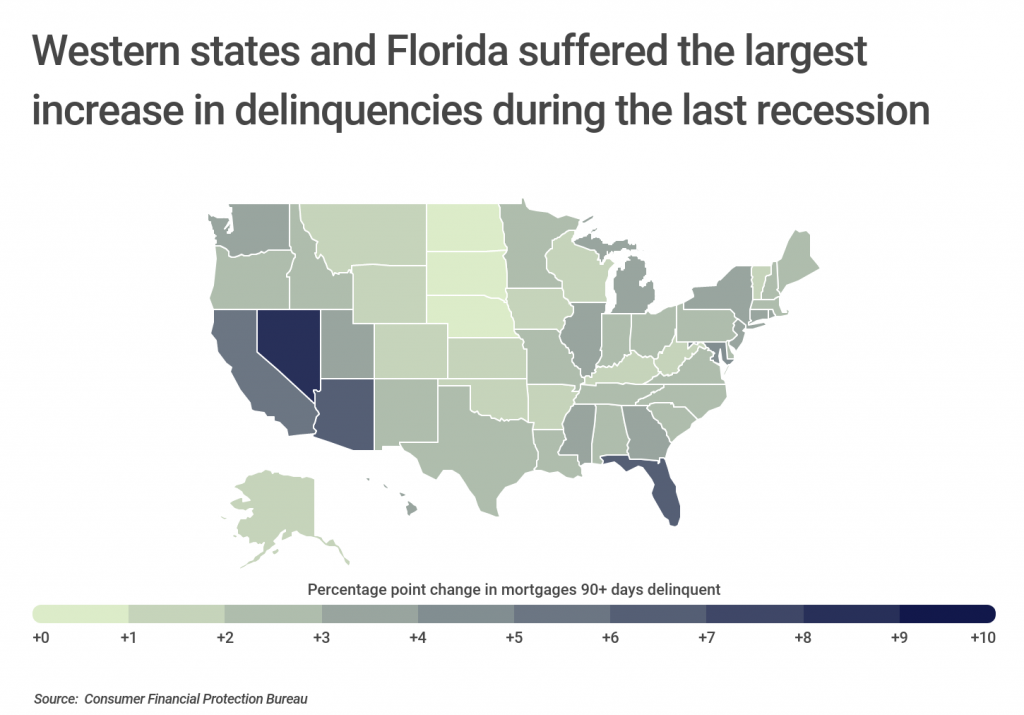 Large Metros With the Biggest Increase in Mortgage Delinquencies During the Last Recession